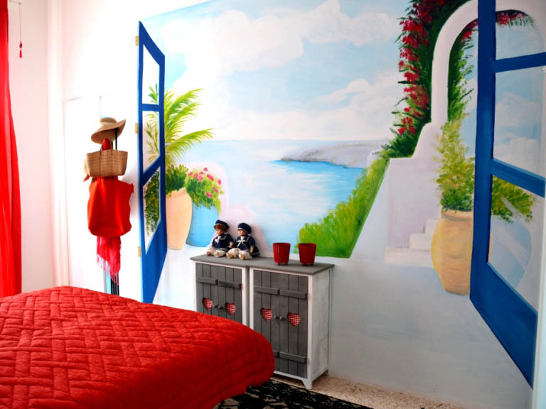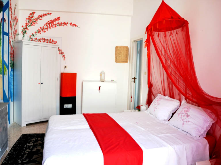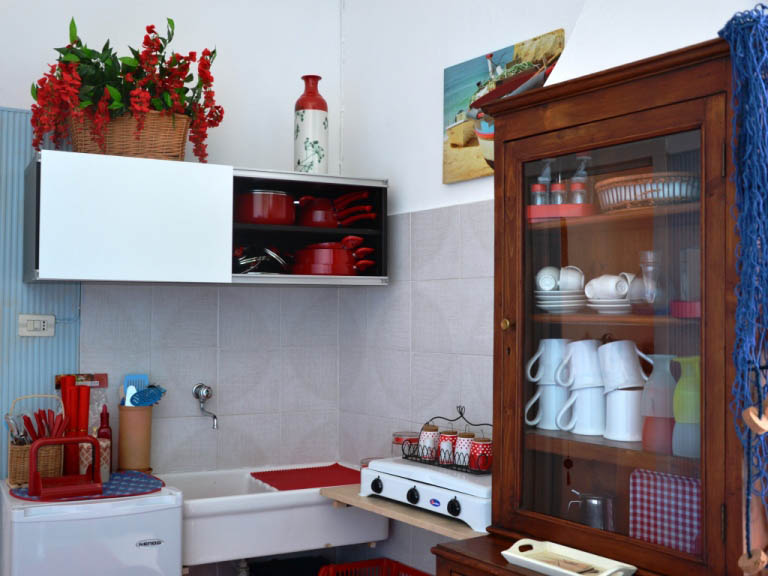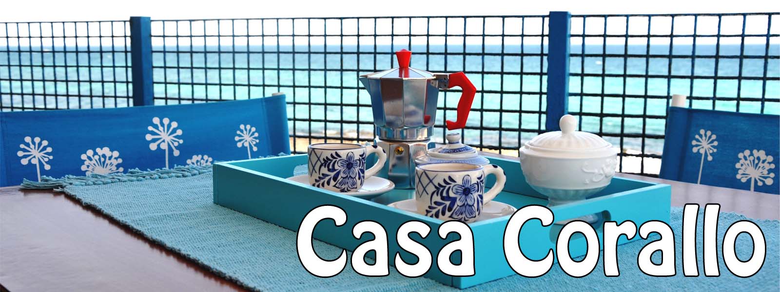 CASA CORALLO è un piccolo appartamento al primo piano, arredato con varie tonalità dei colori rosso, blu e bianco, a qualche metro da una bellissima spiaggia di sabbia.