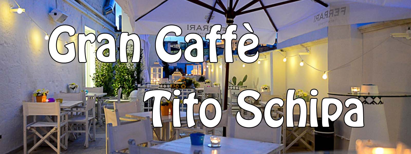Il GRAN CAFFE' TITO SCHIPA, storico locale ostunese, è stato recentemente rinnovato e ristrutturato, tornando agli indimenticati fasti di un tempo. Il nostro consiglio è quello di prendere un caffè sulla meravigliosa terrazza panoramica, fiore all'occhiello del locale.
